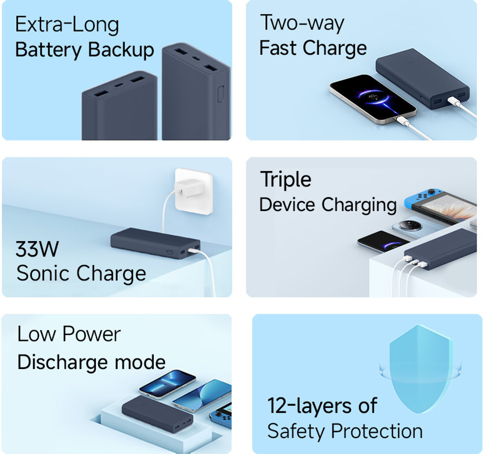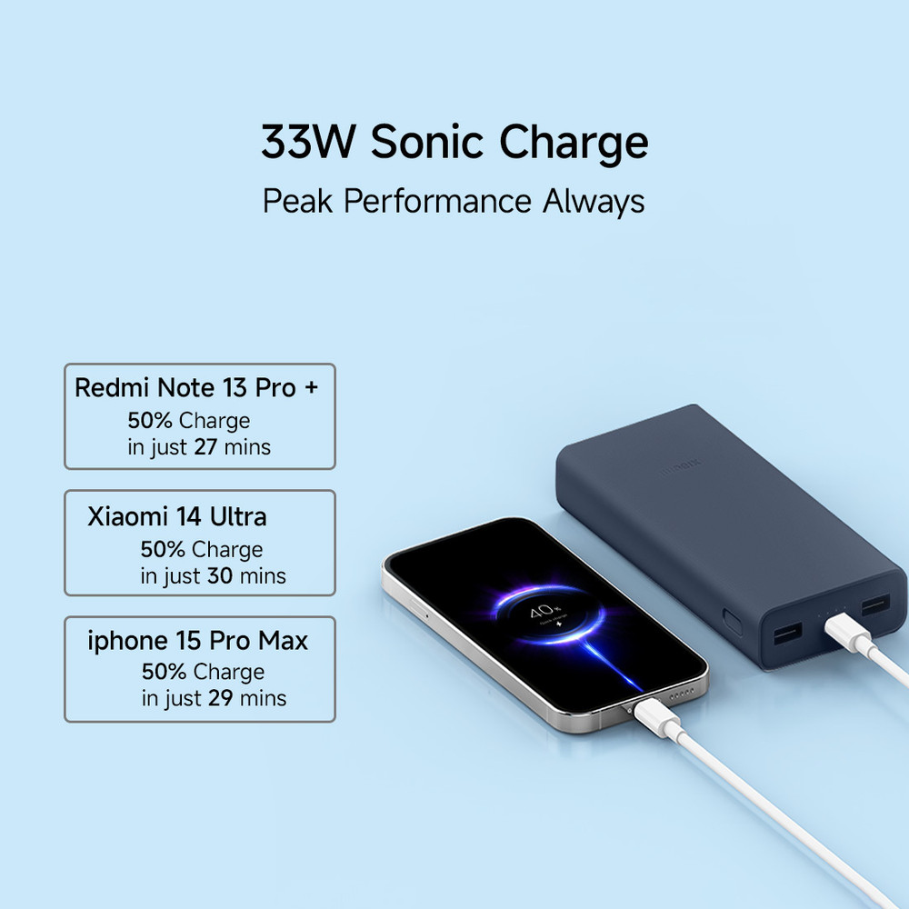 Mi 20000 mAh 33 W Power Bank  (Blue, Lithium-ion, Power Delivery 3.0 for Mobile, Earbuds, Speaker, Smartwatch, Trimmer, Tablet)