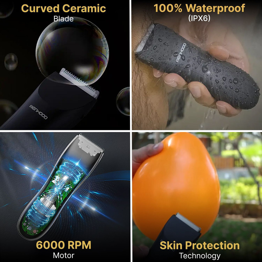 MENHOOD Grooming 1.0 Fully Waterproof Trimmer 150 min Runtime 4 Length Settings (Black)